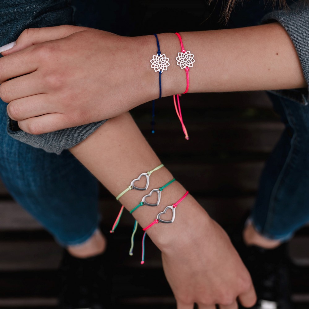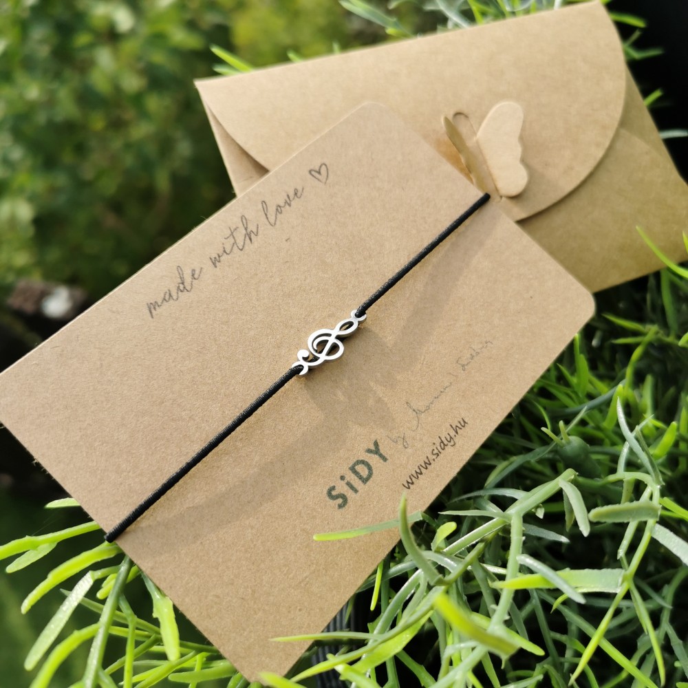 Minimal stílusú karkötő nemesacél köztessel, választható zsinórral, állítható csúszócsomóval a kényelmes viselésért. Rozsdamentes, nem allergizál és nem fogja be a bőröd.